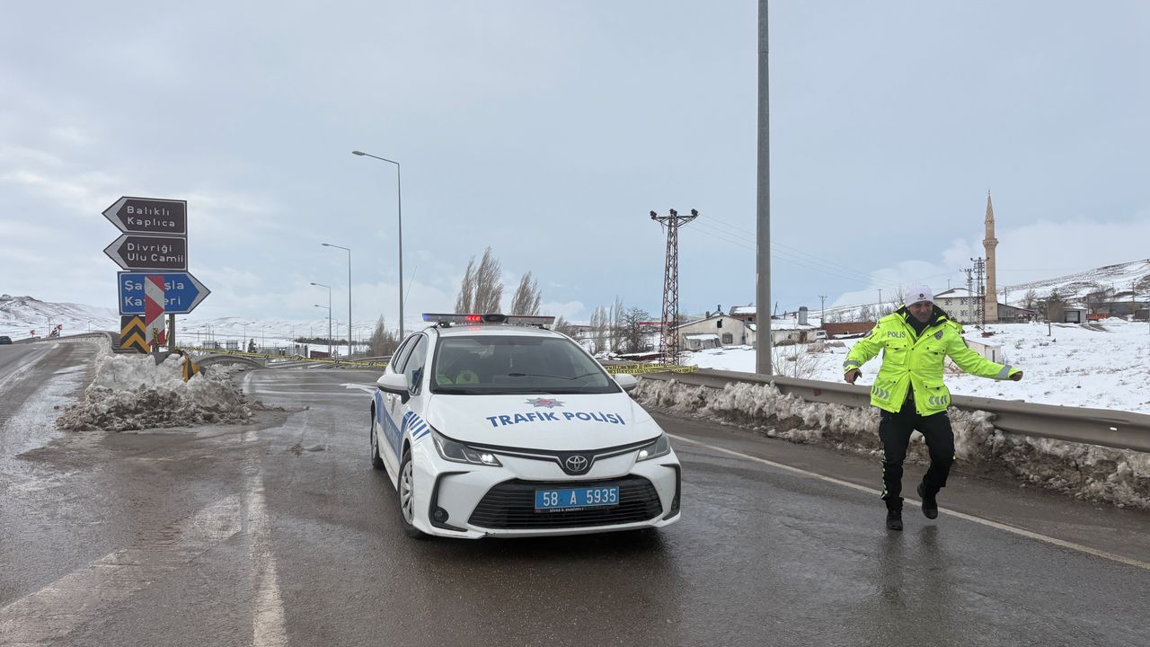 Sivas'ta etkili olan soğuk hava hayatı olumsuz etkiliyor. Sabah saatlerinden itibaren bölgede etkisini artıran tipi nedeniyle Sivas-Kayseri kara yolu ulaşıma kapandı. Kavalı Kavşağı'nda araçların geçişine izin vermeyen ekipler, araçları geldikleri kent merkezine yönlendiriyor. Kara yolları ekipleri ise yolu ulaşıma açmak için çalışmalarını sürdürüyor. (DHA)