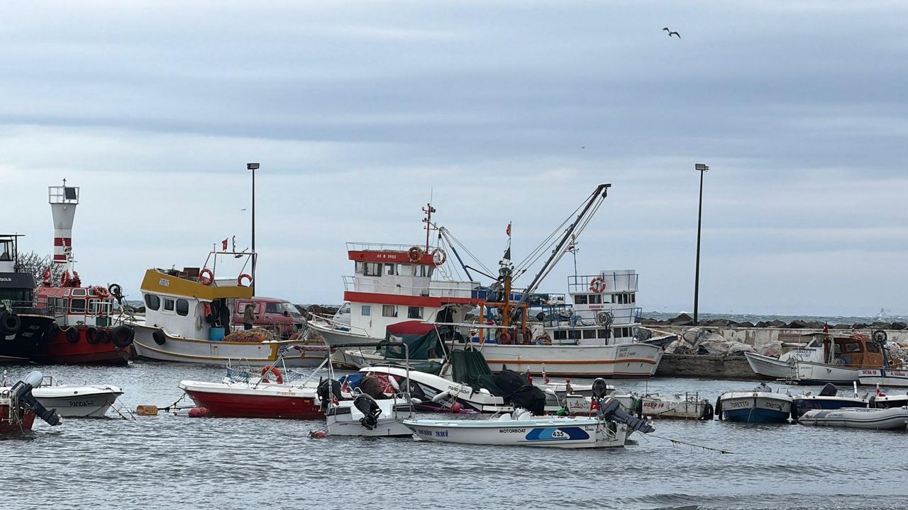 Fırtına nedeniyle Tekirdağ'ın Marmaraereğlisi ilçesindeki balıkçılar denize açılamadı. Teknelerini barınağa çeken balıkçılar, fırtınanın dinmesini bekliyor. (DHA)