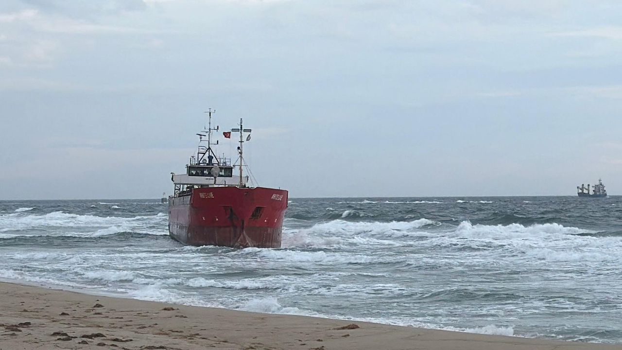 Mehmet YİRUN-Şafak TAŞOYAR/TEKİRDAĞ, (DHA)- TEKİRDAĞ'ın Marmaraereğlisi ilçesinde Palau bayraklı kuru yük gemisi, kuvvetli fırtına nedeniyle karaya oturdu.