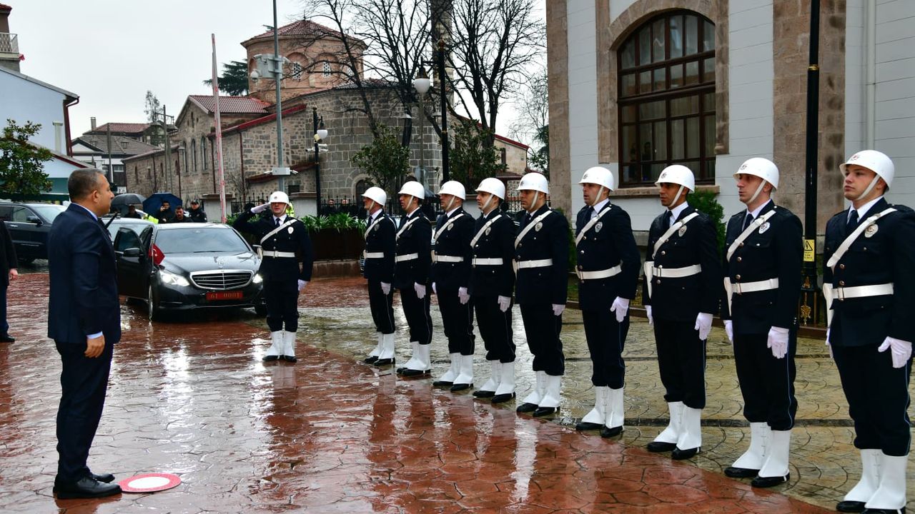 Karşılama töreninin ardından Şeref Defteri'ni imzalayan Trabzon Valisi Tahir Şahin, basın mensuplarına yaptığı açıklamada, 'Cumhurbaşkanımızın tensip ve takdimleri ile atanmış olduğum Trabzon Valiliği görevine bugün itibariyle Bismillah diyerek başlamış bulunuyorum. Şahsımı bu onurlu göreve layık gören başta Cumhurbaşkanımızın Recep Tayyip Erdoğan olmak üzere bakanımıza şükranlarımı arz ediyorum. Şehzadeler şehri, tarih ve medeniyet beşiği bu aziz topraklara hizmet edecek olmanın mesuliyetini büyük bir hassasiyet ve ciddiyetle taşıyarak tevdi edilen bu görevi Trabzon'umuza ve kıymetli hemşerilerimize hayırlı olmasını diliyorum. Yaklaşık 4 bin yıllık köklü tarihi ile Doğu Karadeniz'in merkezi konumunda bulunan Trabzon Fatih Sultan Mehmet Han'ın fethettiği, Yavuz Sultan Selim Han'ın yönettiği, Kanuni Sultan Süleyman Han'ın doğup büyüdüğü, Gazi Mustafa Kemal Atatürk'ün Milli Mücadele sürecinde duruşu dolayısıyla taktirle andığı ve sonrasında 3 kez ziyaret ettiği müstesna bir şehirdir' dedi.