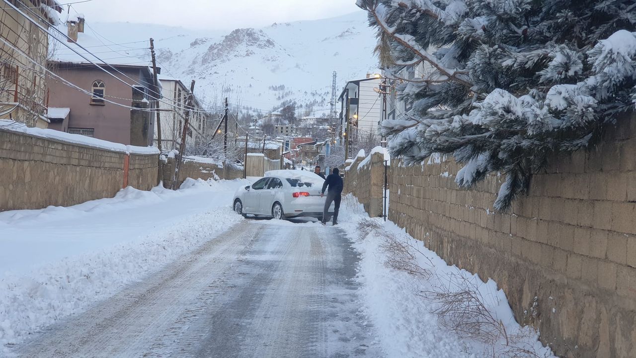 Van'ın Başkale ilçesinde kar yağışı hayatı olumsuz etkiliyor. Kar kalınlığı ilçe merkezinde yaklaşık 30 santimetre, yüksek kesimlerde ise bir metreye kadar ulaşırken, belediye ekipleri mahalle yollarının kapanmaması için sürekli kar temizleme çalışması yapıyor. İlçe merkezinde park edilen bazı araçlar kara gömülürken, beyaz örtüyle birlikte ilçede güzel görüntüler de oluştu. (DHA)