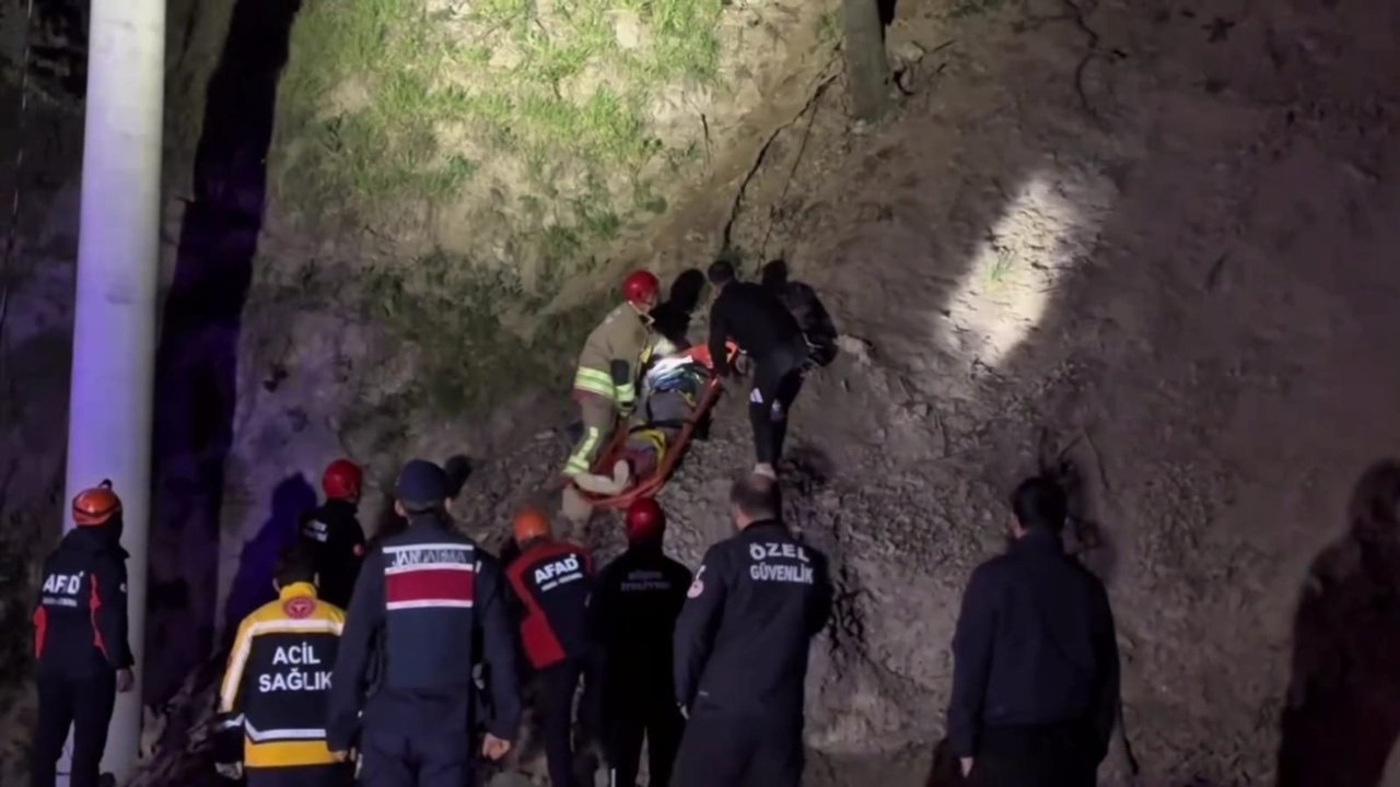 Yamaçtan düşüp mahsur kalan aynı aileden 3 kişi kurtarıldı