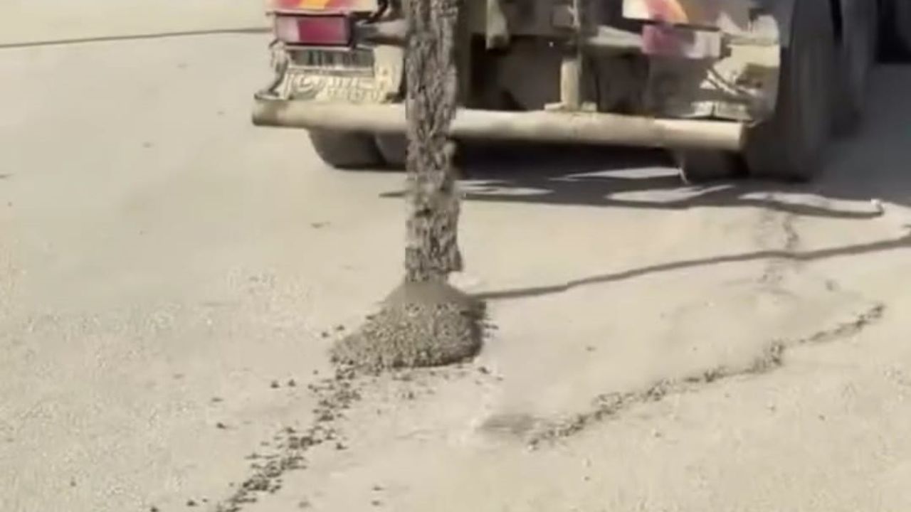 Antakya ilçesinde bir beton mikserinin seyir halindeyken D-825 kara yolu Karaali Kavşağı'nda yola beton döktüğü anların sanal medyada paylaşılması üzerine Hatay Emniyet Müdürlüğü ekipleri harekete geçti. Görüntülerden tespit edilen beton mikserin şoförüne 'Karayolları Trafik Kanunu'nun ilgili maddelerince 5 bin 662 lira idari para cezası kesildi. (DHA)