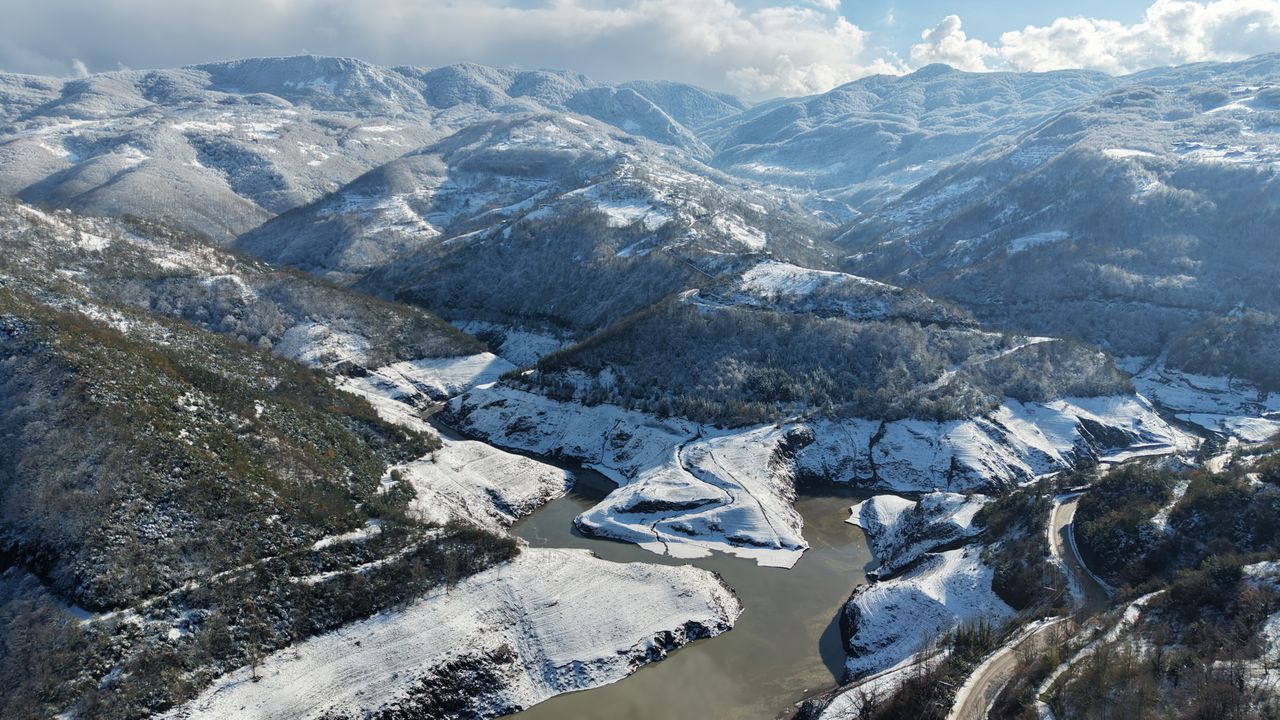 Ardacan UZUN/KOCAELİ, (DHA)- KOCAELİ'de etkili olan kar yağışları sonrası, Yuvacık Barajı ve çevresindeki orman alanı, beyaz örtüyle kaplandı. Manzara dronla görüntülendi. Daha önce yüzde 1'e kadar gerileyen barajdaki su seviyesi, kar yağışının ardından yüzde 16'ya yükseldi.