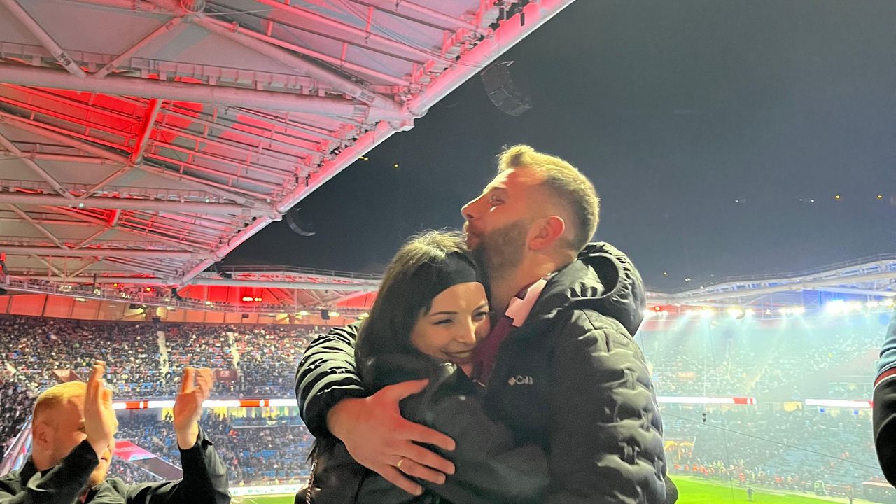 Nurgül GÜNAYDIN/ TRABZON,(DHA)- TRABZONSPOR ile Fenerbahçe arasında 14 Şubat Sevgililer Günü'nde oynanan karşılaşma öncesinde tribünlerde romantik anlar yaşandı. Emre Şeras, kız arkadaşı Eda Sevim'e sürpriz bir evlilik teklifinde bulundu.