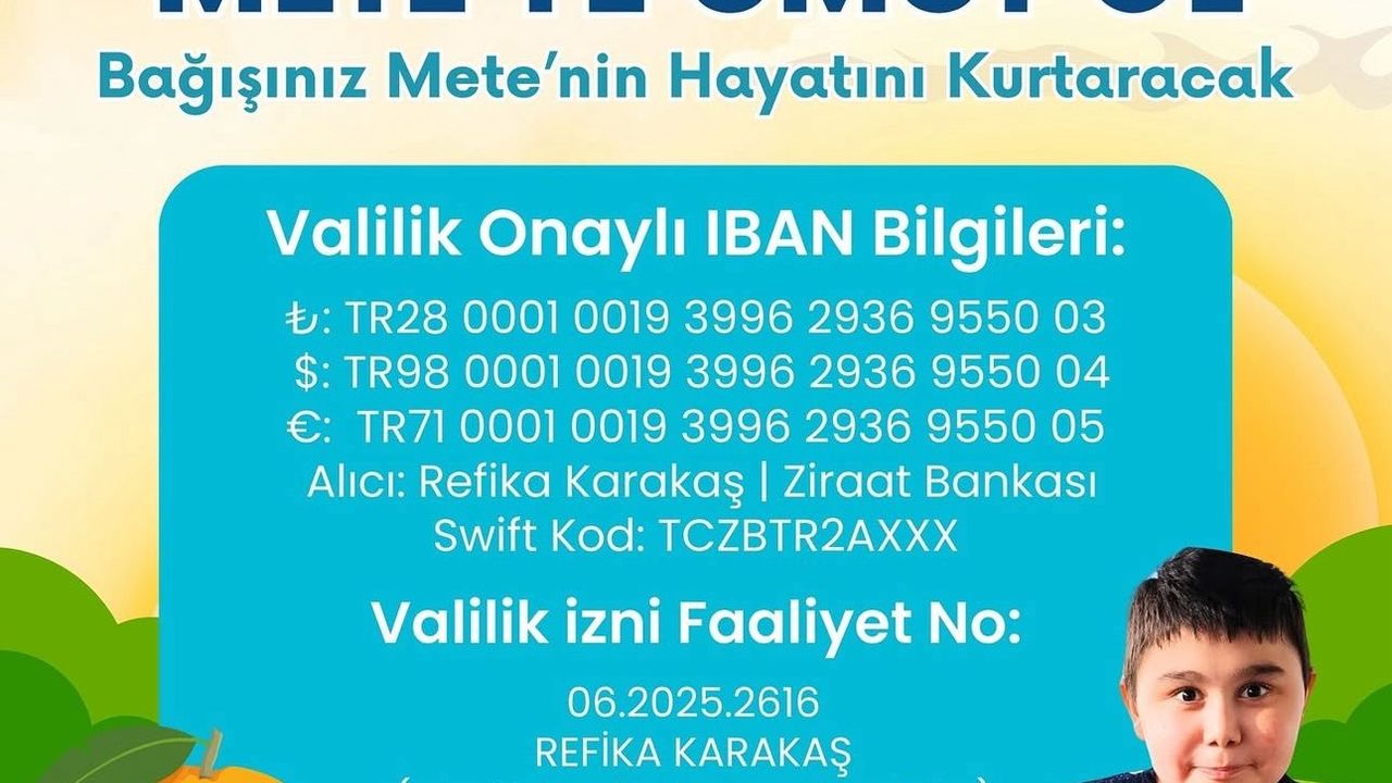 Refika ve Mustafa Karakaş çiftinin iki çocuğundan Mete Karakaş'a, 1 yaşında DMD hastalığı teşhisi konuldu. Mete'nin yurt dışında tedavi görebilmesi için gerekli olan 3 milyon doların toplanabilmesi amacıyla Ankara Valiliği'nin onayıyla geçen ocak ayında kampanya başlatıldı. Kampanya kapsamında şimdiye kadar tedavi için gereken miktarın yüzde 27'lik kısmı toplandı.