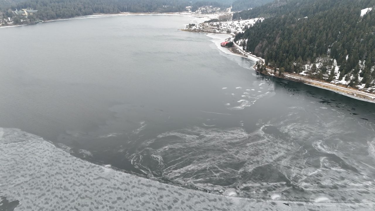 Kentin doğal güzellikleriyle ünlü Abant Gölü Milli Parkı, sömestir tatilinde ziyaretçi akınına uğradı. Bölgede bulunan otellerde konaklayan ve günübirlik aileleri ile birlikte tatil için Abant'a gelen çocuklar, karla kaplı tepelerden kaymanın keyfini çıkardı. Abant'ta etkili olan soğuk hava nedeniyle gölün bir bölümü buz tuttu. Çam ormanlarıyla çevrili Abant'ta gölün donmasıyla ortaya çıkan eşsiz manzara dron ile görüntülendi. (DHA)