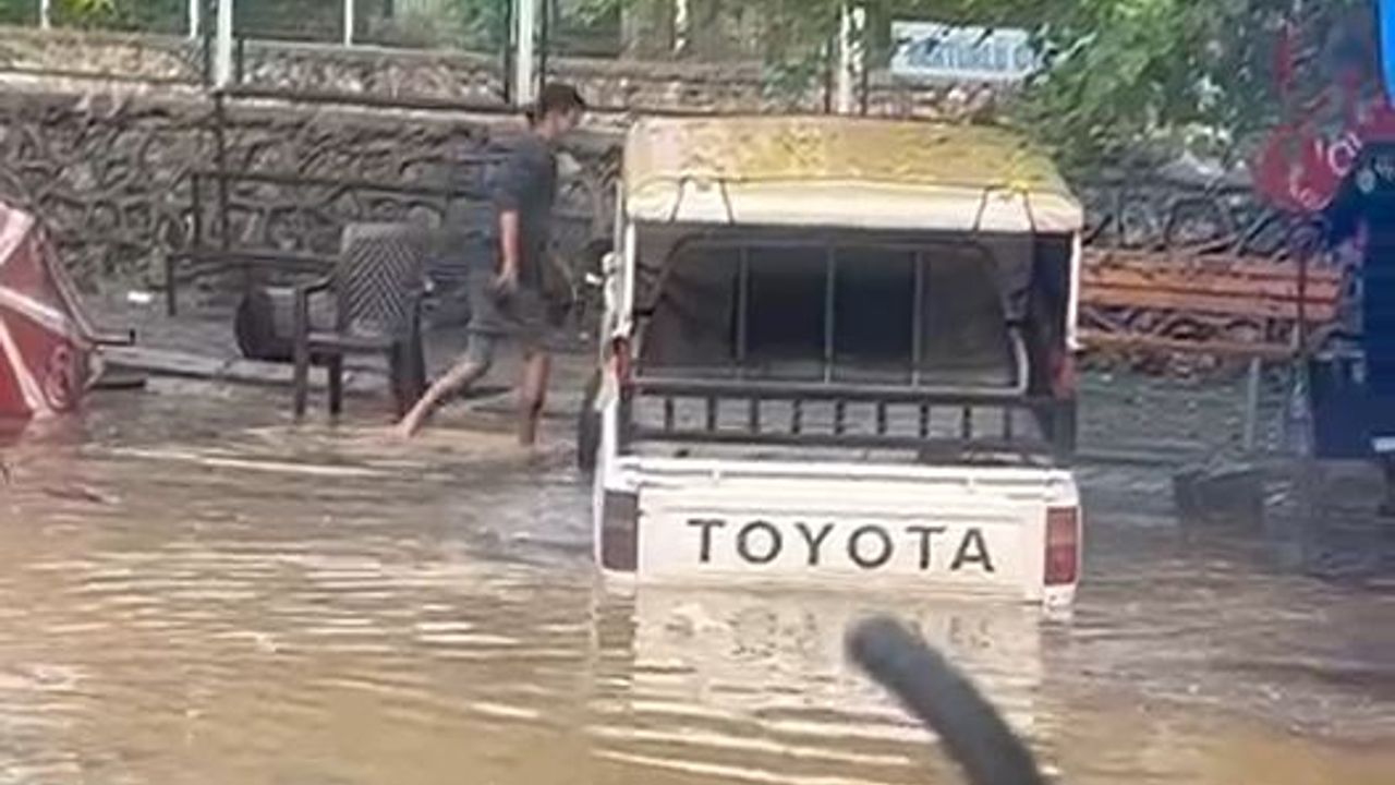 Akşam saatlerinde etkisini artıran sağanak yağış, kent merkezinde günlük yaşamı olumsuz etkiledi. Sağanak nedeniyle vatandaşlar da saçak altlarına girerek korunmaya çalıştı. Yağmur, özellikle sanayi sitesi bölgesinde etkili oldu, su baskınları yaşandı. Bölgedeki bazı iş yerleri yağmur sularıyla dolarken, araçlar da yolda mahsur kaldı. O anlar cep telefonu kamerasına yansıdı. (DHA)