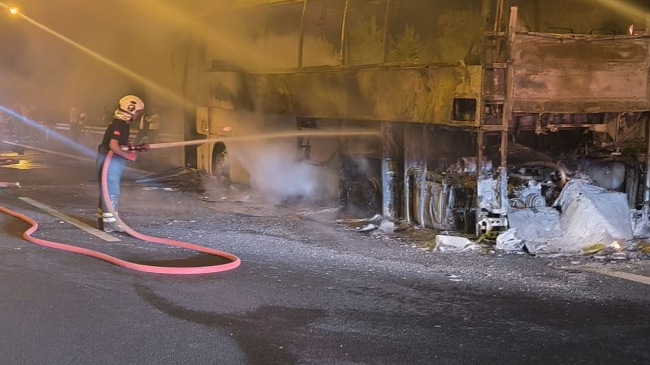 Tarsus-Adana-Gaziantep (TAG) Otoyolu İncirlik Park Alanı mevkisindeki yolcu otobüsünde, gece saatlerinde yangın çıktı. Alevleri fark eden şoför, aracı park edip yolcuları tahliye ettikten sonra durumu 112 Acil Çağrı Merkezi'ne bildirdi. İhbarla bölgeye itfaiye ekipleri sevk edildi. İtfaiye ekipleri yangına müdahale ederek söndürdü. Otobüs kullanılamaz hale geldi. Yangının çıkış nedeniyle ilgili inceleme başlatıldı. (DHA)