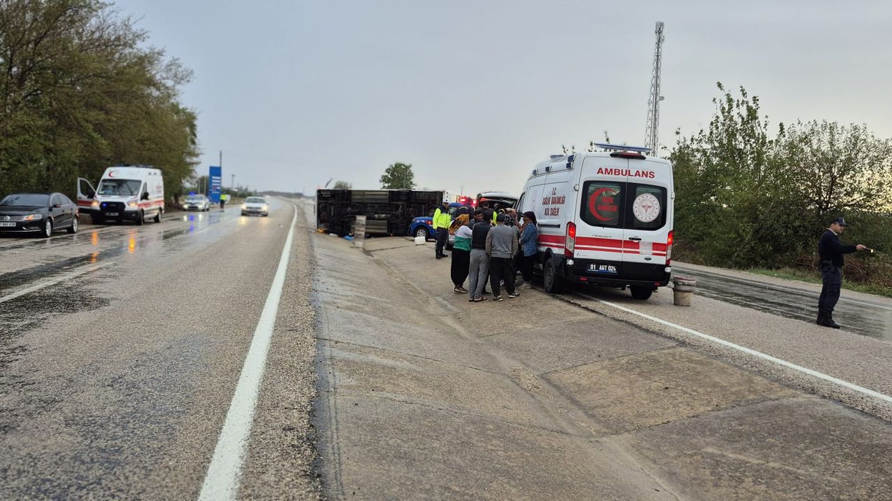 Kaza, saat 17.00 sıralarında İmamoğlu-Kozan kara yolu Çukurören mevkisinde meydana geldi. Mandalina hasadına giden tarım işçilerini taşıyan Suriye uyruklu Celal Y. yönetimindeki 01 MC 4875 plakalı servis midibüsü, kontrolden çıkarak devrildi. Kazada araçta bulunan 1'i çocuk, 11 kişi yaralandı. İhbar üzerine kaza yerine sağlık ve jandarma ekipleri sevk edildi. Yaralılar, çevredeki vatandaşların da yardımıyla özel araçlar ve ambulanslarla Kozan Devlet Hastanesi’ne kaldırılarak tedavi altına alındı. Yaralıların hayati tehlikesinin bulunmadığı belirtildi.