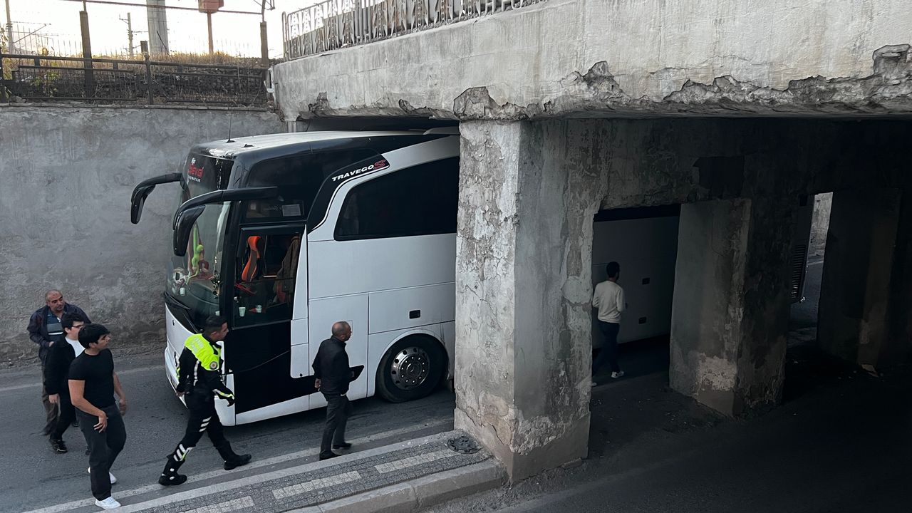 Olay, akşam saatlerinde Kocasinan ilçesi Bağdat Caddesi’ndeki altgeçitte meydana geldi. ERCİYES 38 FK ile pazar günü oynayacağı maç için Kayseri’ye gelen Ağrı 1970 Spor’un oyuncuları, Vali Muammer Güler Sahası'nda antrenman yaptı. Antrenman sonrası oyuncuları otele götüren 04 AS 250 plakalı otobüs, altgeçide sıkıştı. Otobüsteki oyuncular ve kafile başka araçla otele geçerken, altgeçide sıkışan otobüs ise lastiklerin havası indirilerek sıkıştığı yerden kurtarıldı. (DHA)