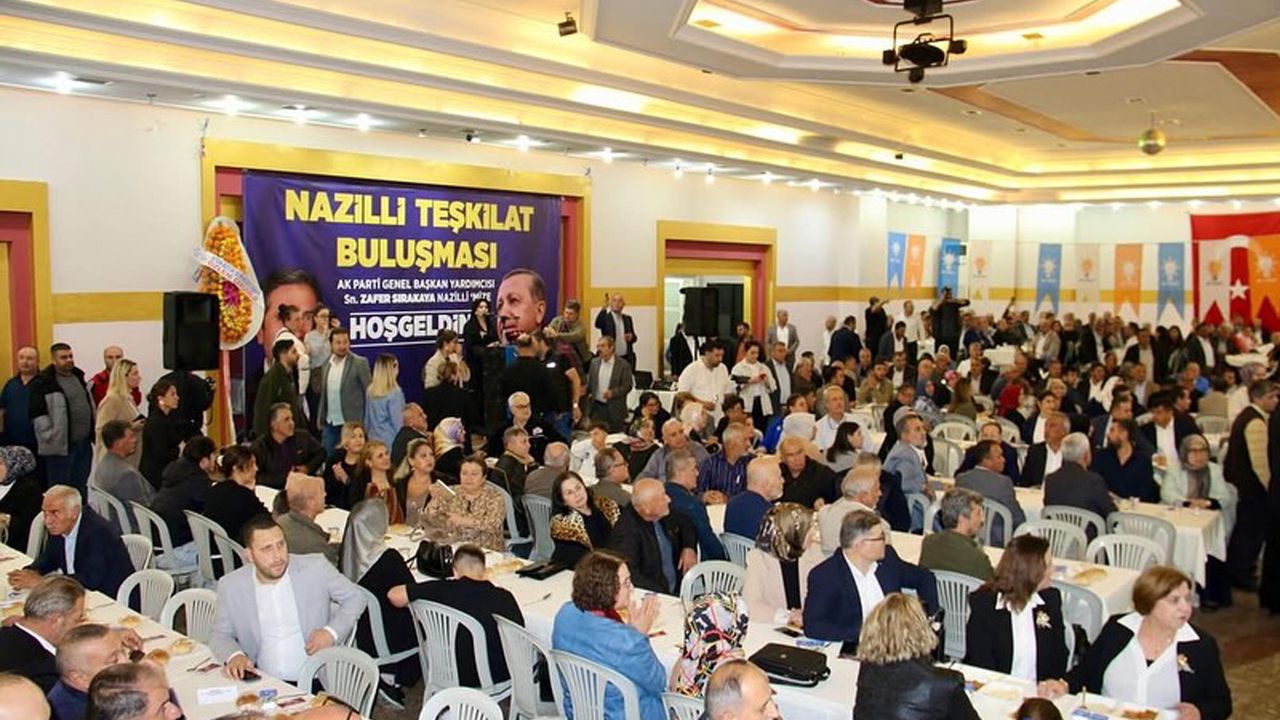 AK Parti Genel Başkan Yardımcısı Zafer Sırakaya, AK Parti Büyükşehir Belediye Meclis Üyesi Taner Sayın'ın ev sahipliğinde Nazilli Ahmet Şensan Kültür Merkezi'nde düzenlenen dayanışma ve kaynaşma yemeğinde partililerle bir araya geldi. Programa; AK Parti Genel Başkan Yardımcısı Zafer Sırakaya'nın yanı sıra AK Parti Aydın Milletvekilleri Mustafa Savaş ve Seda Sarıbaş, AK Parti'li belediye başkanları, AK Parti İl Başkanı Mehmet Erdem, MHP Aydın İl Başkanı Haluk Alıcık, AK Parti ve MHP ilçe başkanları ve partililer katıldı. Burada konuşan Sırakaya, "Bizde asıl olan görevli olmak değil, gönüllü olmaktır. Her bir kardeşimizin gönlüne hitap edeceğiz. Bizim için ülkemizin ve milletimizin istiklali esastır. En önemli özelliğimiz, vefamız. Kuruluşundan itibaren emek veren herkesin kapısına gidip, hatırını soracağız. Tüm bunları yapmak için inanmak gerekiyor. İnanmak tek başına yeterli değil, yürümek lazım. Heybemizde sevgimiz, kardeşliğimiz olacak. 86 milyonu kucaklayacak kadar kollarımız geniş. 1 kişinin ayağa kalkmasıyla kader değişir. Bundan 24 yıl önce bir yiğidin ayağa kalkmasıyla Türkiye'nin makus talihi değişmiştir" dedi.