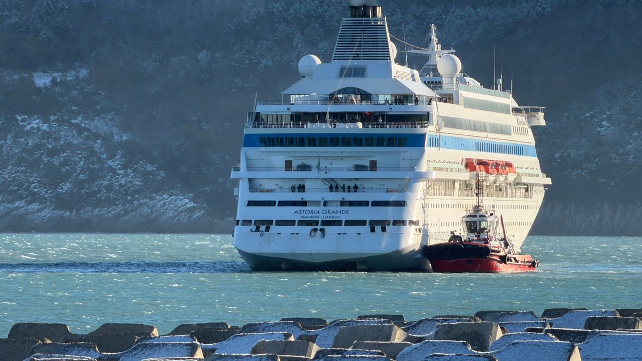 Ayhan ACAR/AMASRA (Bartın), (DHA)- BARTIN'ın Amasra ilçesine gelen 'Astoria Grande' isimli kruvaziyer, kuvvetli fırtına nedeniyle 5 kez deneme yapmasına rağmen limana yanaşamadı.