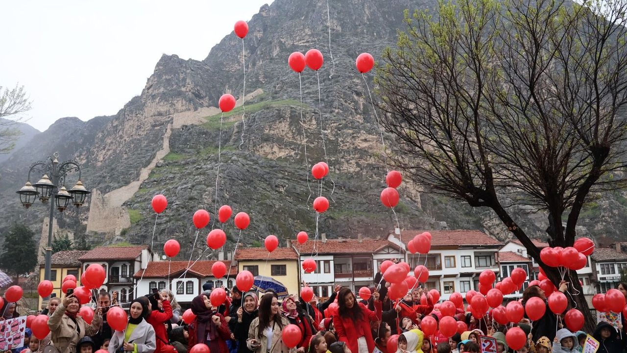 Şerife Serap KARA/AMASYA, (DHA) - AMASYA'da anaokulu öğrencileri ile otizmli çocuklar, 2 Nisan Otizm Farkındalık Günü kapsamında düzenlenen etkinlikte pankartlar ve balonlarla farkındalık oluşturdu.