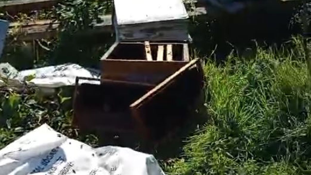 Mehmet SALMAN/CİDE (Kastamonu), (DHA)- KASTAMONU'nun Cide ilçesinde Savaş Uygun'a ait 5 arı kovanı ayı saldırısı sonucu zarar gördü.