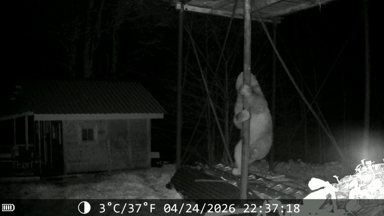 Cevahir TOPALOĞLU/HEMŞİN (Rize), (DHA)- RİZE'nin Hemşin ilçesinde, kış uykusundan uyanan bozayı, indiği köyde Şefik İnce'nin yerden yüksekte bulunan kovanlarındaki ballara ulaşmak için demir direğe tırmanmaya çalıştı. O anlar fotokapan kamerasına yansıdı.
