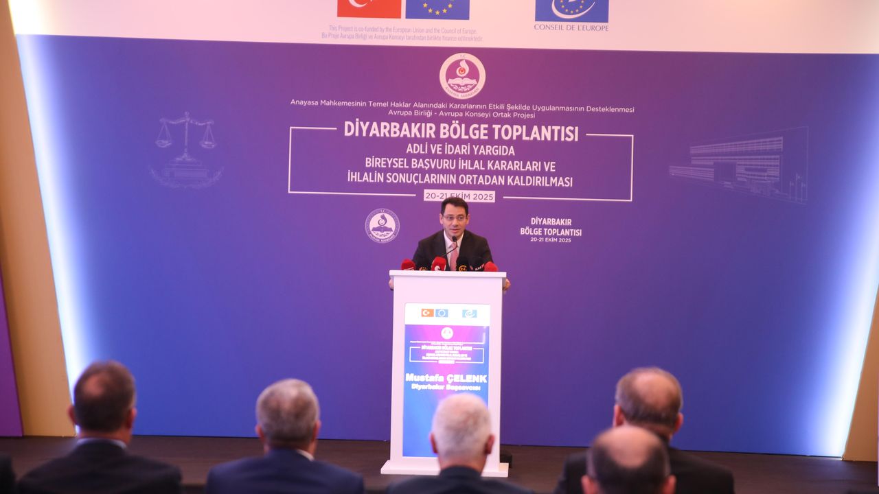 Diyarbakır’da bir otelin toplantı salonunda, ‘Adli ve idari yargıda bireysel başvuru ihlal kararları ve ihlalin sonuçlarının ortadan kaldırılması’ konulu bölge toplantısı düzenlendi. Toplantıya Anayasa Mahkemesi Başkanı Kadir Özkaya, Yargıtay Birinci Başkanı Ömer Kerkez, Yargıtay Cumhuriyet Başsavcısı Muhsin Şentürk, Avrupa Konseyi İnsan Hakları, Adalet ve Hukuki İşbirliği Standartlarının Uygulanması Dairesi Başkanı Lilja Grétarsdóttır, Avrupa Konseyi Ankara Program Ofisi Başkanı William Massolin, Diyarbakır Cumhuriyet Başsavcısı Mustafa Çelenk, Diyarbakır Adli Yargı Adalet Komisyonu Başkanı Erhan Çavuşoğlu, Diyarbakır Bölge Adliye Mahkemesi Başkanı Kenan Şenlik, Diyarbakır Bölge Adliye Mahkemesi Cumhuriyet Başsavcısı Ali İrfan yılmaz ve davetliler katıldı.