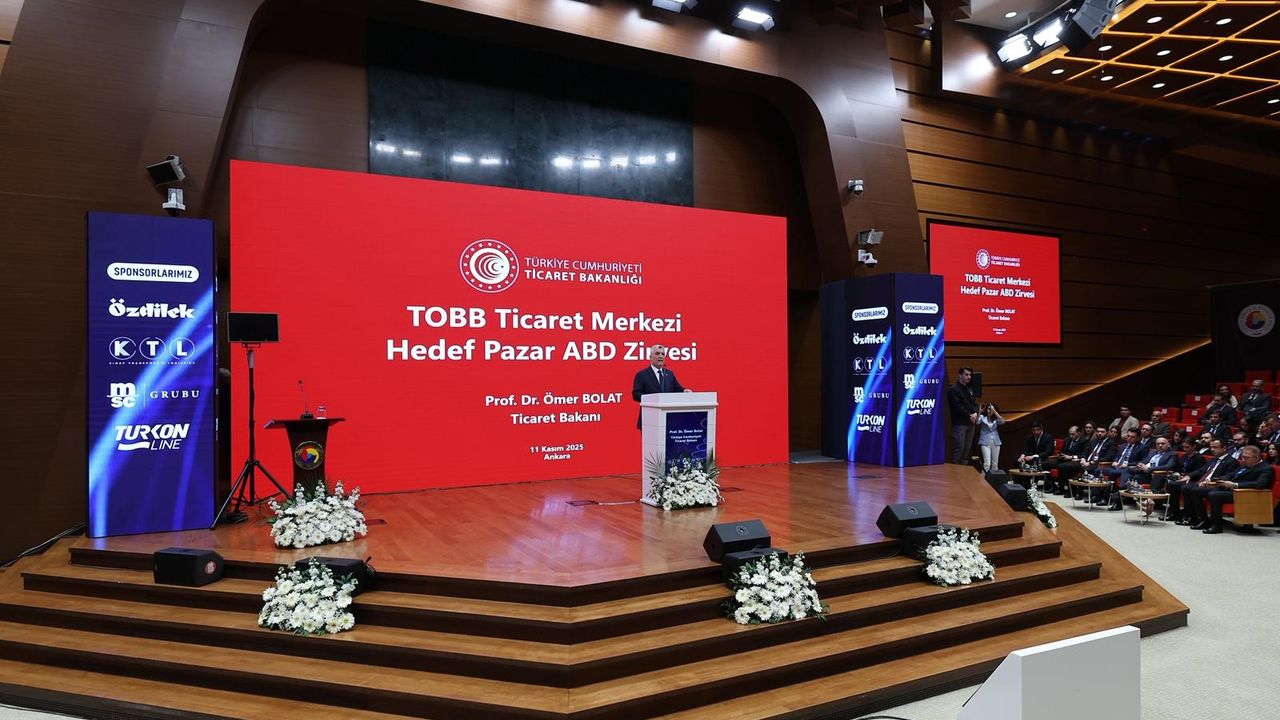 Ticaret Bakanı Ömer Bolat, 'TOBB Ticaret Merkezleri Hedef Pazar ABD Zirvesi'ne katıldı. TOBB Konferans Salonunda gerçekleştirilen programda konuşan Bakan Bolat, ABD pazarının çok önemli olduğunu söyledi. Bolat, "2024'te 16,5 milyar dolar ABD'ye mal ihracatı yaptık. ABD'den de 18,8 milyar dolar ithalat yaptık. Türkiye olarak ABD pazarında yoğun bir şekilde yer alıyoruz. Bu noktada başta mücevherat ürünü, tekstil, hazır giyim, makine, gıda, tarım, demir çelik, otomobil, finans sanayi gibi ürünlerin ihracatını yapıyoruz. ABD’den ithalatımızda ise LNG, hurda demir, makine, organik kimyasallar, eczacılık ürünleri ve hava taşıtları alıyoruz ve iki ülkenin değerli liderleri 100 milyar dolar hedefine bağlılar. Bu noktada da biz de bu hedefe doğru koşuyoruz. Gelecek yıl 40 milyar doları aşacağız. Ticaret Bakanlığı olarak 2020 yılından bugüne ABD'de 24 adet yurt dışı pazarlama faaliyetini UR-GE Projesi desteklerimiz kapsamında gerçekleştirdik. ABD’de faaliyet gösteren 177 şirket birim kira desteğinden, 119 şirket tanıtım desteğinden, 158 şirketimiz ise marka desteğinden faydalanmıştır. Los Angeles ve New York'a genel ticaret heyetleri, sektörel ticaret heyetleri programları düzenlendi. E-ihracatı destekliyoruz" dedi.