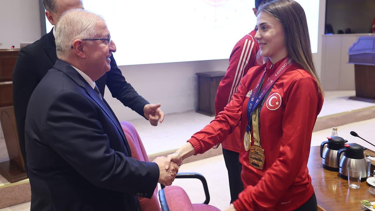 Bakanlığın sosyal medya hesabından yapılan açıklamada, "Milli Savunma Bakanı Yaşar Güler, 24-30 Ekim 2025 tarihleri arasında Çin'in Wuxi kentinde düzenlenen Dünya Taekwondo Şampiyonası'nda toplamda 3 altın, 2 gümüş, 1 bronz madalya kazanarak tarihi bir başarı elde eden Taekwondo Milli Takımımızı kabul etti. Türkiye Taekwondo Federasyonu Başkanı Bahri Tanrıkulu, Milli Takım Antrenörü Uğur Güngör ve Taekwondo Milli Takım sporcularımızın yer aldığı kabulde, Bakan Yaşar Güler elde edilen başarıdan dolayı hem yöneticileri hem de sporcuları tebrik etti" denildi. (DHA)