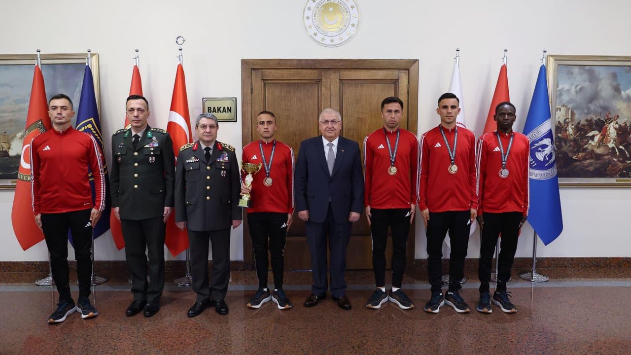 Bakanlığın sanal medya hesabından yapılan açıklamada, 'Milli Savunma Bakanı Yaşar Güler, Başkomutanımız Gazi Mustafa Kemal Atatürk'ün Ankara'ya gelişi anısına 28 Aralık tarihinde düzenlenen '90'ıncı Büyük Atatürk Koşusu'nda 1'incilik kazanan TSK Spor Gücü Kır Koşusu Takımı sporcularını kabul etti. Genelkurmay Başkanı Orgeneral Selçuk Bayraktaroğlu'nun da yer aldığı kabulde Bakan Yaşar Güler, 9 takım içerisinde 1'inci olan personelimizi tebrik etti' denildi. (DHA)