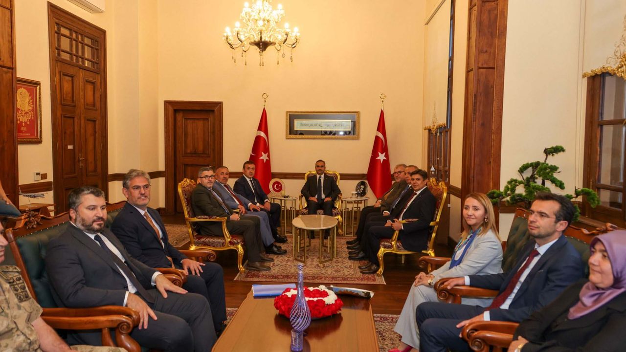 Sanayi ve Teknoloji Bakanı Mehmet Fatih Kacır, Osmaneli ilçesindeki fabrika açılışının ardından kent merkezine geçerek Bilecik Valiliği’ni ziyaret etti. Girişte Vali Faik Oktay Sözer’in yanı sıra Ak Parti milletvekili Halil Eldemir ile geleneksel Alp kıyafetli çocuklar tarafından karşılanan Bakan Kacır, 2023 yılı ekim ayı ziyaretinde diktiği valilik bahçesindeki çınar ağacını suladı. Valilik özel defterini imzalayan Bakan Kacır, valilik makamında Vali Faik Oktay Sözer’den kentte yapılan çalışmalarla ilgili bilgi alarak kentten ayrıldı. (DHA)