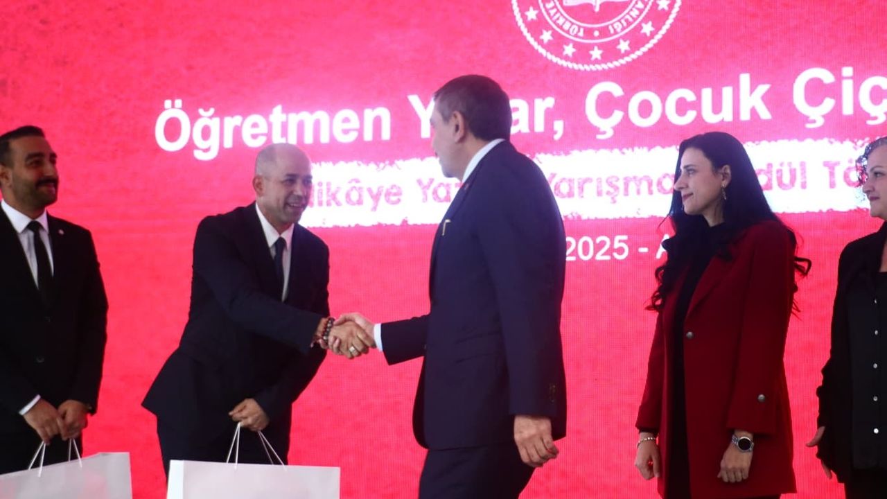 Milli Eğitim Bakanı Yusuf Tekin, Mogan Turizm Meslek ve Teknik Anadolu Lisesi’nde, 'Öğretmen Yazar, Çocuk Çiçek Açar' temalı hikaye yazma yarışması ödül törenine katıldı. Temel Eğitim Genel Müdürlüğü tarafından öğretmenlerin pedagojik bilgi ve deneyimlerini yaratıcılıkla birleştirmelerine imkân sağlamak, çocuk edebiyatına özgün katkılar sunmak amacıyla 30 Haziran-8 Ağustos tarihleri arasında gerçekleştirilen yarışmaya, 2 bin 76 öğretmen hikaye metinleriyle başvurdu. Hikayeler, 1, 2, 3 ve 4'üncü sınıf düzeyleri olmak üzere 4 kategoride, 68 akademisyenden oluşan değerlendirme kurulu tarafından incelendi. Değerlendirme sonucunda yayımlanmaya değer görülen 20 eser, 16 Ekim 2025’te kamuoyuna duyuruldu.