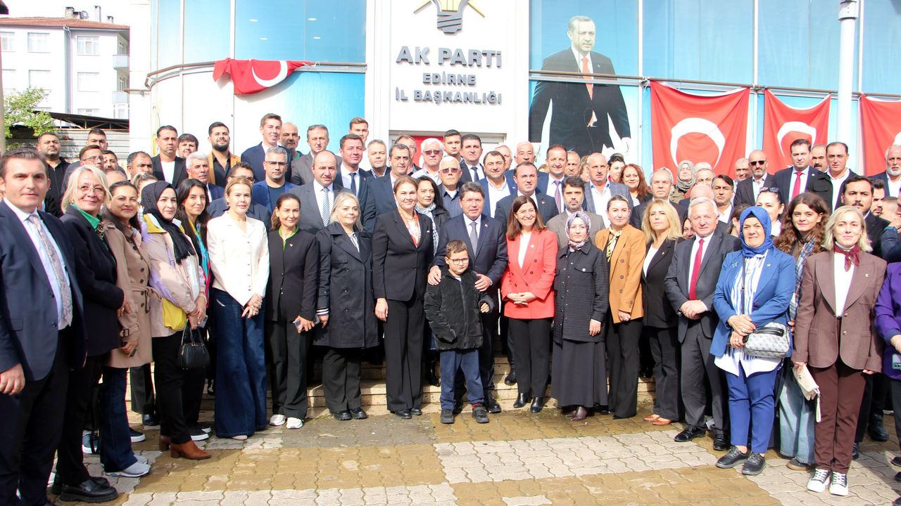 Adalet Bakanı Yılmaz Tunç, cuma namazı sonrası Edirne Sarayı'nda devam eden ihya çalışmalarını inceleyerek Adalet Kasrı'nı gezdi. Edirne Valisi Yunus Sezer ve AK Parti Edirne Milletvekili Fatma Aksal ile birlikte yetkililerden bilgi alan Bakan Tunç, daha sonra AK Parti Başkanlığı'nda partililerle buluştu. Burada partililere seslenen Tunç, AK Parti'nin siyaset mühendisliğiyle masa başında kurulmuş bir parti olmadığını belirterek, "AK Parti'nin kuruluşu bir siyaset mühendisliği neticesinde kurulmuş parti değil, masa başında Cumhurbaşkanımız Sayın Recep Tayyip Erdoğan'ın birkaç arkadaşıyla beraber bir araya gelip 'Hadi bir parti kuralım arkadaşlar. Oy isteyelim milletten, belki iktidara geliriz' diye oluşturduğu bir siyasi hareket değil. Bu siyasi hareket milletin ta kendisidir. Milletin kendi elleriyle kurduğu bir partidir ve 23 yıldan bu yana da AK Parti'den, Recep Tayyip Erdoğan'dan ve Cumhur İttifakı'ndan bu millet vazgeçmemiştir, yine vazgeçmeyecektir. Yine 2028 yaklaştığında milletimiz Recep Tayyip Erdoğan diyecek. Bundan hiç şüphemiz yok. Dünyanın en tecrübeli, en dirayetli, en güçlü lideriyle Türkiye bu çevremizdeki sıkıntılar ve dünya mazlumlarının umudu olan Türkiye olarak Türkiye yüzyılını inşa edeceğiz" dedi.
