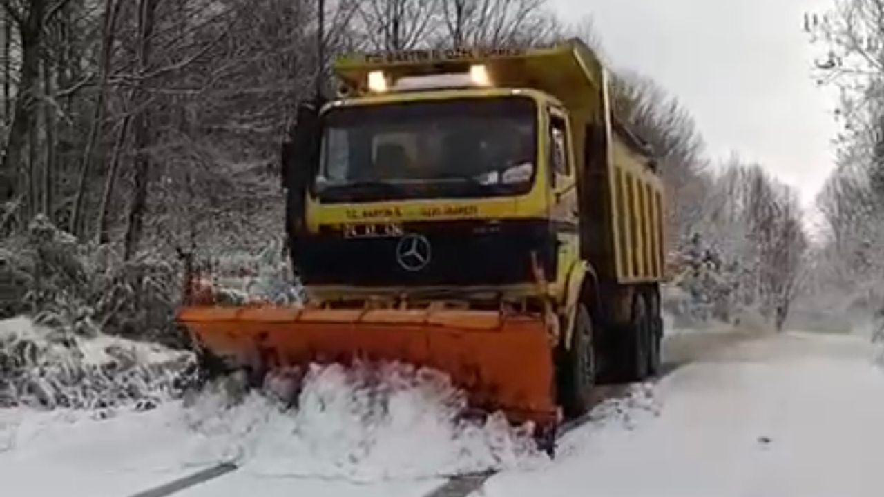 Ayhan ACAR/ULUS(Bartın),(DHA)-BARTIN'da etkili olan kar yağışı nedeniyle kent genelinde 44 köy yolu, ulaşıma kapandı. Kar kalınlığı yükseklerde 60 santime ulaştı.