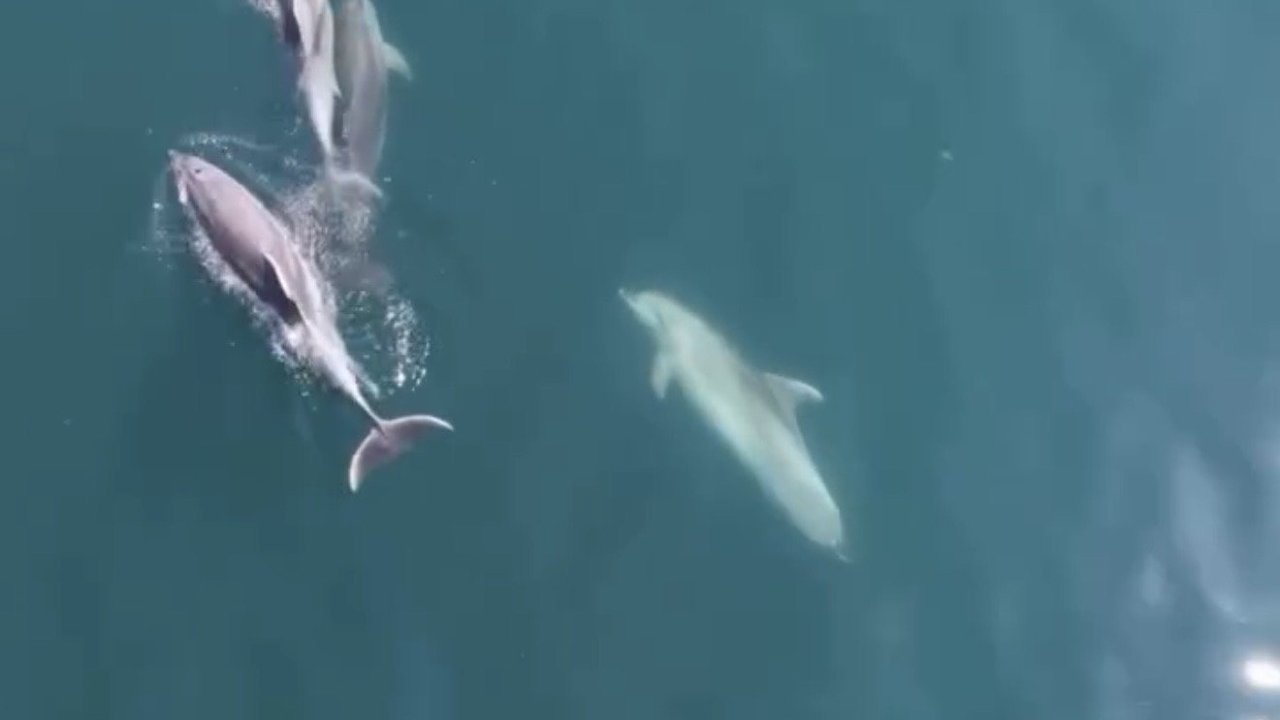 Kızılkum sahilinde vatandaşlar öğle saatlerinde kayalıklarda gezdikleri sırada kıyıya kadar gelen 4 yunus gördü. Suyun içinde adeta dans ederek yüzen yunuslar, çevredekiler tarafından cep telefonu ile kaydedildi. Yunuslar bir süre sonra dibe dalarak gözden kayboldu. (DHA)
