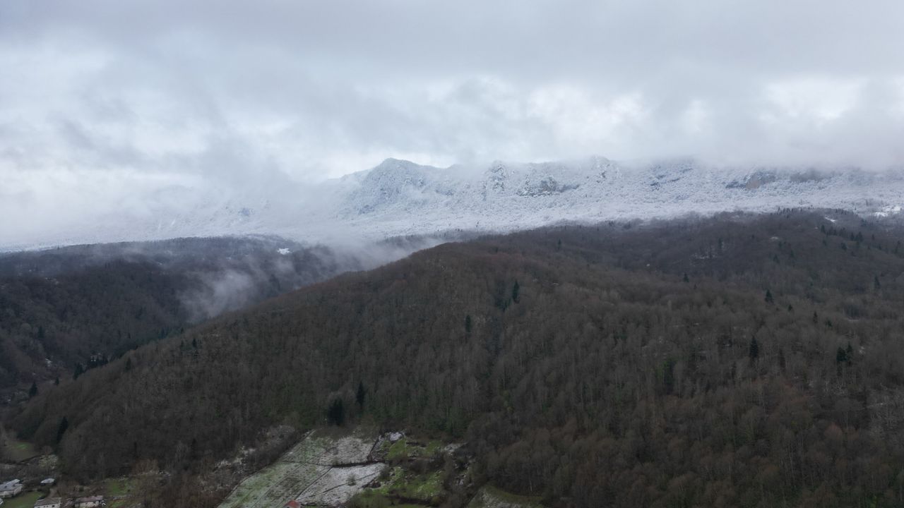Meteoroloji Genel Müdürlüğü'nün sarı kodlu uyarısı sonrası Bartın iç kesimlerinde kar kalınlığı 20 santime ulaştı. Arıt bölgesindeki köyler beyaza bürünürken, kar yağışına hazırlıksız yakalanan sürücüler trafikte zor anlar yaşadı. Kar yağışının etkili olduğu Küre Dağları Milli Parkı'nın bazı bölümlerinde eşsiz manzaralar ortaya çıkarken; eteklerinde bulunan Sıralı, Ören ve Söğütlü köylerindeki kar manzarası dron ile görüntülendi. (DHA)