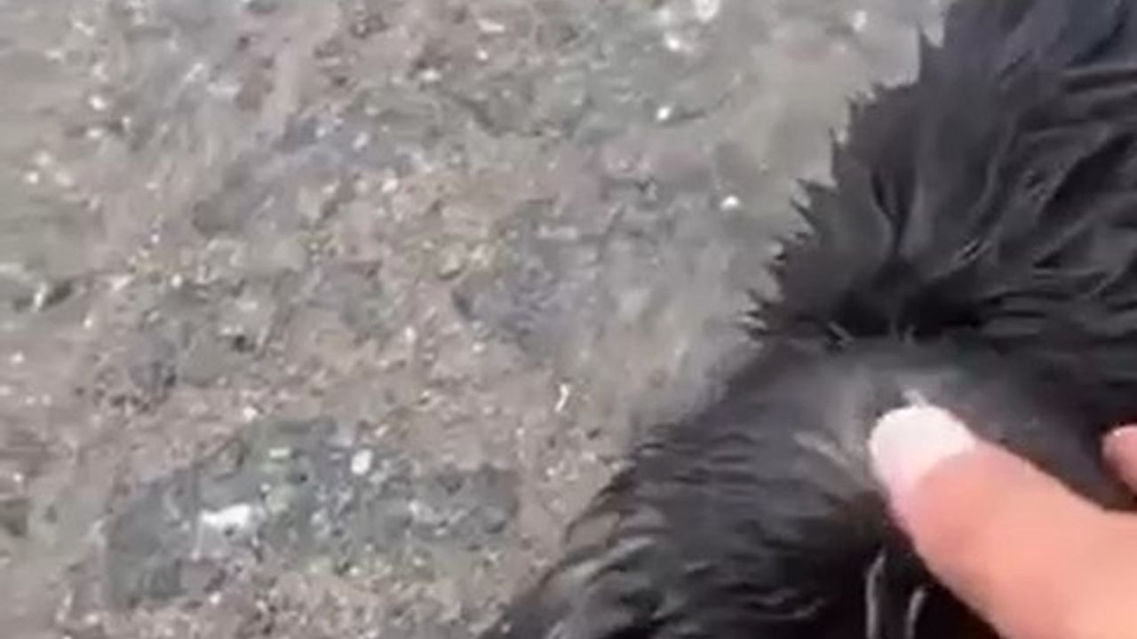 Çiftlikköy ilçesi Denizçalı köyü Handere mevkiinde bir hafriyat kamyonunun şoförü, yol ortasında başında plastik bir kap bulunan yavru köpeği fark etti. Aracını durdurup inerek köpeğin yanına giden şoför, plastik kabı çıkardı. O anları cep telefonu kamerasıyla kaydeden şoför, köpeği sevdikten sonra yoluna devam etti. (DHA)
