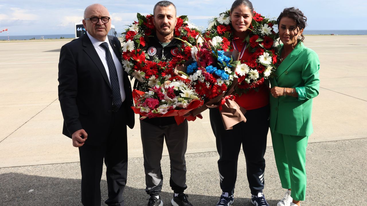 Nurgül GÜNAYDIN/TRABZON,(DHA) – ÇEKYA ’nın Ostrava kentinde düzenlenen Genç Kadınlar Avrupa Boks Şampiyonası’nda altın madalya kazanan milli sporcu Havvanur Kethüda, Trabzon Havalimanı'nda çiçeklerle karşılandı.