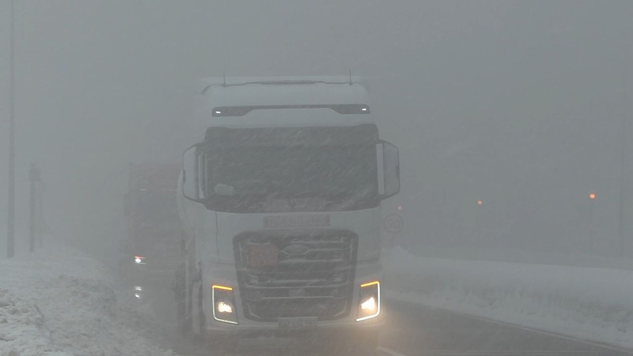 Mutlu YUCA-Zübeyde ÖZMEN/BOLU, (DHA)- BOLU Dağı'nın D-100 kara yolu geçişinde aralıklarla hafif kar yağışı ve sis etkili oluyor.