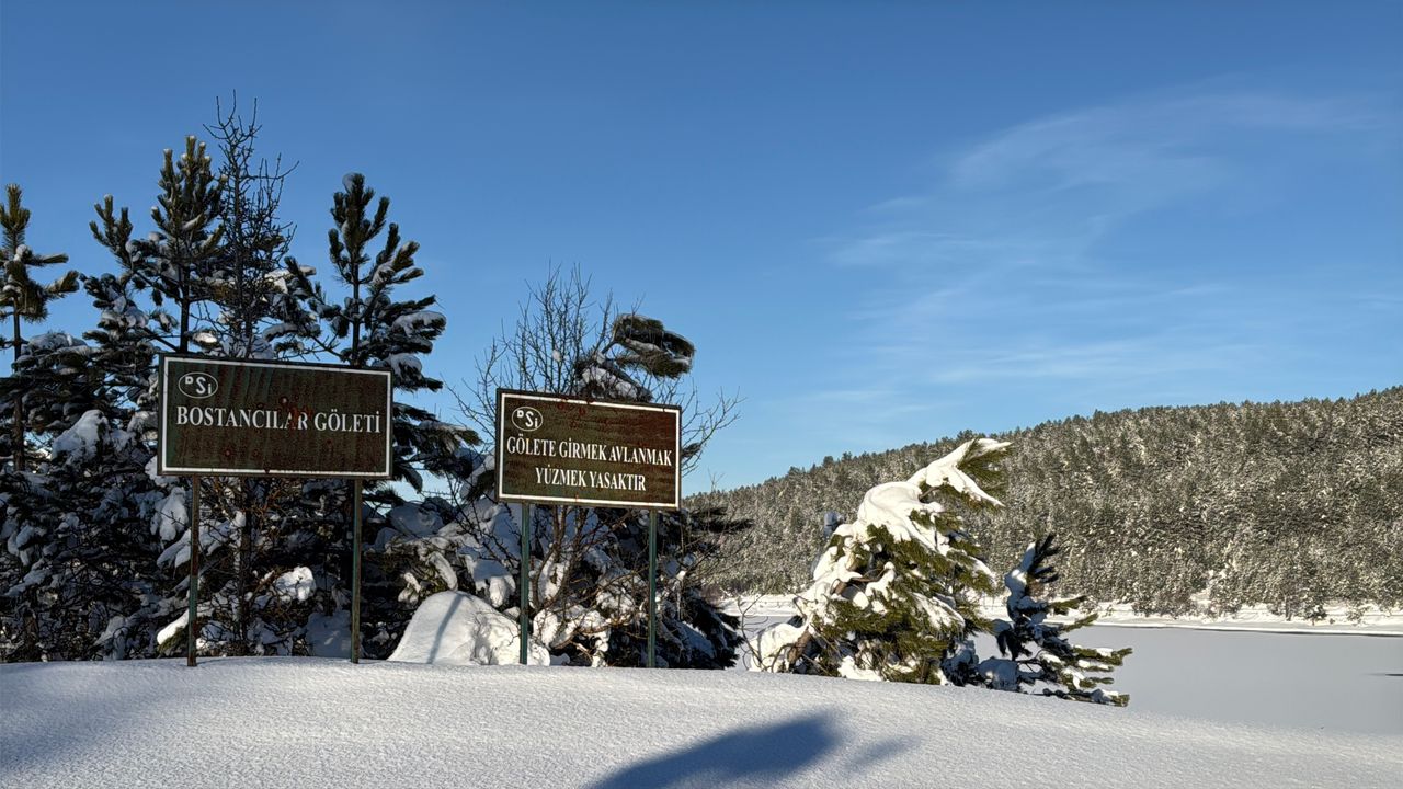 Murat ÖZELCİ/EFLANİ(Karabük),(DHA)- KARABÜK'ün Eflani ilçesinde, dondurucu soğuklar nedeniyle Bostancılar Göleti'nin yüzeyi buz tuttu.