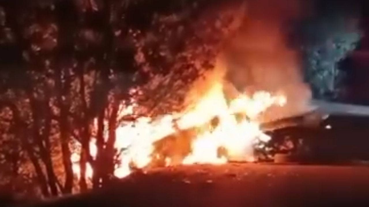 Bursa'da, ciple kafa kafaya çarpışan otomobil alev aldı