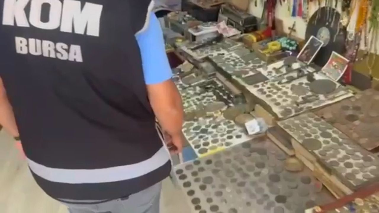 Bursa Emniyet Müdürlüğü Kaçakçılık ve Organize Suçlarla Mücadele Şube Müdürlüğü ekipleri, tarihi eser kaçakçılığını önlemeye yönelik çalışmalarını sürdürüyor. Çalışmalar kapsamında merkez Osmangazi ilçesindeki bir ev ve iş yerine eş zamanlı operasyon düzenlendi. Adreslerde yapılan aramalarda Roma, Bizans ve Osmanlı dönemlerine ait 774 sikke, 240 obje, 2 ruhsatsız tabanca, tabancalara ait 137 fişek ve 1 el telsizi ele geçirildi. Şüpheli C.E., gözaltına alındı.