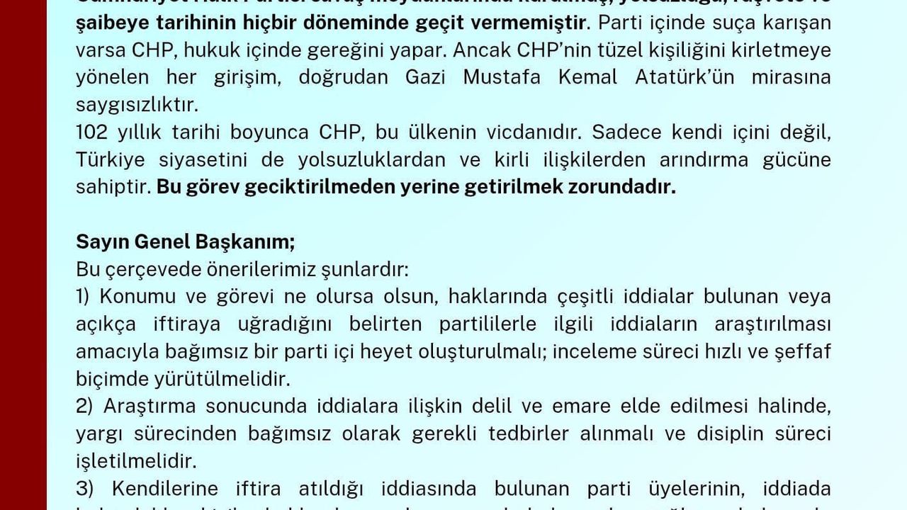 amacıyla bağımsız bir parti içi heyet oluşturulmalı; inceleme süreci hızlı ve şeffaf biçimde yürütülmelidir.