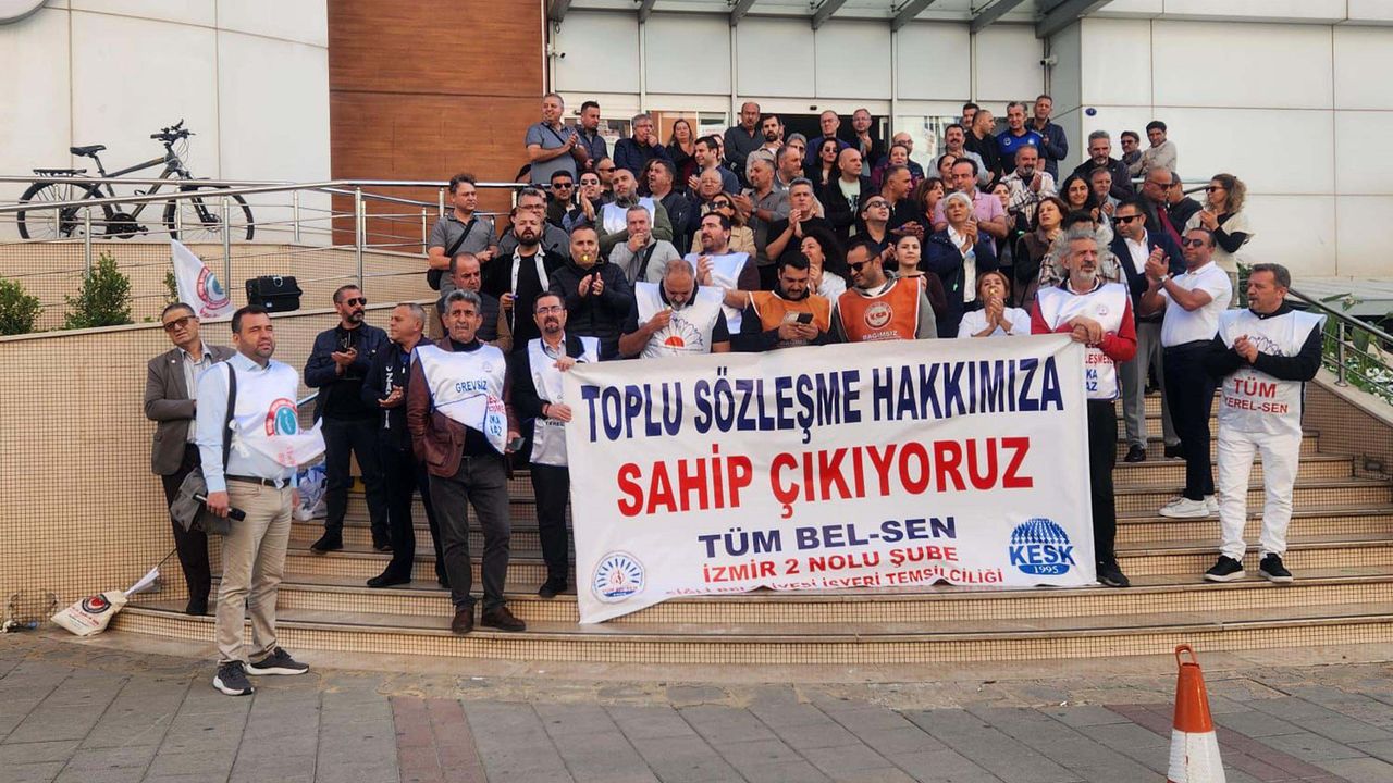 Çiğli Belediyesi'nde, Tüm Bel-Sen İzmir 2 Nolu Şube'ye bağlı memurlar, geriye dönük TİS ve sosyal haklarını alamadıkları gerekçesiyle 24 Ekim'de 1 gün süreyle iş bıraktı. Memurlar, bugün de seslerini duyurmak için bir araya geldi. Belediye binasının önünde buluşan memurlar adına basın açıklamasında bulunan Tüm Bel-Sen İzmir 2 Nolu Şube Başkanı Nihat Filiz, “Ekim ayında yarım yatırılan TİS alacağımızın hemen hesaplarımıza yatırılmasını, ağustos ayından itibaren ödenmeyen TİS alacaklarımızın da somut ve uygulanabilir bir plan dahilinde ivedilikle ödenmesini istiyoruz. Bu taleplerimiz karşılandığı anda, bizler de eylemlerimizi sonlandıracak ve işimize dört elle sarılacağız. Çiğli Belediye emekçileri olarak taleplerimiz, belediyenin mali yapısını sarsacak afaki bir talep değildir. Belediyeyi ekonomik olarak çıkmaza sokmaz. Aksine, iş barışına hizmet eder, emekçilerin kuruma olan güvenini pekiştirir" dedi.