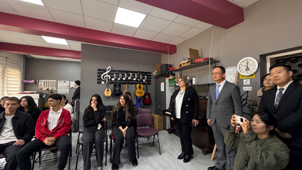 Kübra SONKAYA-Batuhan DURNAOĞLU/ANKARA, (DHA)- ÇİN Halk Cumhuriyeti'nin Ankara Büyükelçisi Jiang Xuebin, Ayrancı Anadolu Lisesi öğrencileri ile birlikte 'Ankara'nın Taşına Bak' şarkısını söyledi.
