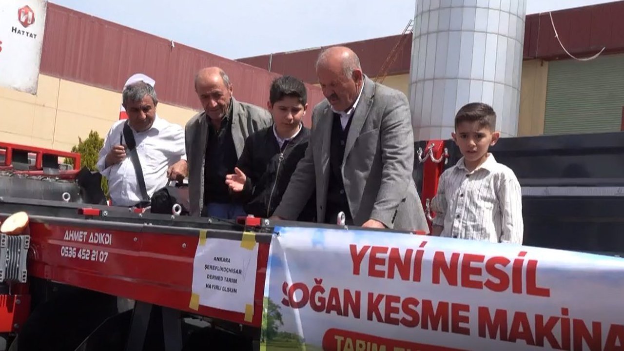 Çorum Ticaret ve Sanayi Odası Fuar Kompleksi'nde 16-19 Nisan tarihleri arasında düzenlenen 'Çorum Tarım ve Hayvancılık Fuarı'nda sektör profesyonelleri ile üreticileri bir araya getirildi. Fuarda kendi ürettiği makineyi tanıtan Ahmet Adıkdı'nın standı yoğun ilgi gördü. Çorum merkeze bağlı Karacaköy Köyü'nde yaşayan endüstri meslek lisesi makine bölümü mezunu Ahmet Adıkdı'nın geliştirdiği 'Soğan Hasadı Makinesi' ile dikkat çekti. Özellikle yoğun iş gücü gerektiren soğan kesim işlemini hızlandıran makinenin hem zamandan tasarruf sağladığını hem de işçilik maliyetlerini ciddi oranda düşürdüğünü söyleyen Ahmet Adıkdı, 'Makineyi 1 milyon 200 bin TL'ye mal ettim. Daha önce geleneksel yöntemlerde işçiler tarafından tek tek yapılan kesim işlemi, bu makine sayesinde kısa sürede ve daha düzenli şekilde gerçekleştirilebiliyor. Yurt dışındaki benzer sistemleri izledim. Videoları inceledim. Bu işe tamamen merakla başladım. Yurt dışında kullanılan makineleri araştırdım, detaylarını öğrendim. Daha sonra kendi imkanlarımla projelendirdim ve köydeki evimde yapmaya karar verdim. Önce çizimini yaptım, ardından gerekli malzemeleri temin ettim. Yaklaşık bir ay uğraşarak makineyi çalışır hale getirdim' dedi.