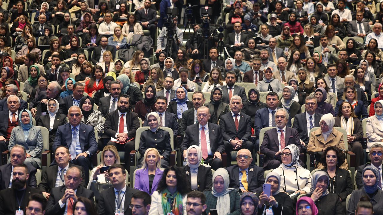 Cumhurbaşkanı Erdoğan, nüfusun arttığını ancak nüfus artış hızının azaldığına vurgu yaparak, "Toplam doğurganlık oranı nüfusun kendisini yenileme seviyesinin altında gerçekleşiyor. TÜİK'in açıkladığı verilere göre geçtiğimiz yıl ölçülen toplam doğurganlık hızı 1,48. Şu anda bir felaketi yaşıyoruz. Bu oran nüfusun kendisini yenileme düzeyi olan 2,10 bandının çok altında. Geleceğimiz açısından alarm zilleri hem de çok yüksek sesle çalıyor. Bu ülkenin istikbalini düşünen hiç kimse buna kayıtsız kalamaz. 2022 yılı verilerine baktığımızda istihdamda olan kadınların toplam doğurganlık hızının 1,38, istihdam sürecinde yer almayan kadınların toplam doğurganlık hızının ise 1,72 olduğunu görüyoruz. Yani çalışma hayatının doğurganlık hızı üzerinde sınırlı bir etkisi olduğu, istihdamda olmayan kadınların da çocuk sayısının düştüğü ortaya çıkıyor. Bundaki temel etken, hiç şüphesiz şehirde kadınların giderek daha fazla yalnızlaşmasıdır. Beyler alınmasın, kusura da bakmasın ama kadınlar çocuk yetiştirme noktasında çoğu zaman eşlerinden gerekli desteği göremiyor. Yükün büyük bir bölümü maalesef kadınların omuzlarına yükleniyor. Çocukların kendisiyle birlikte ailesine, topluma ve insanlığa faydalı birer fert olarak yetişmesinde anneler kadar babalara da sorumluluk düşüyor. Bilimsel araştırmalarda ebeveynlerin evlatlarına ortak ilgi göstermesinin eğitim öğretimin yanı sıra çocukların hayatın her alanında başarı düzeyini artırdığını gösteriyor. Dolayısıyla buradan evlat sahibi tüm babalarımıza eşlerine daha fazla yardımcı olmaları daha fazla destek olmaları özellikle çocuklarıyla daha nitelikli zaman geçirmeleri çağrısında bulunuyorum" dedi.