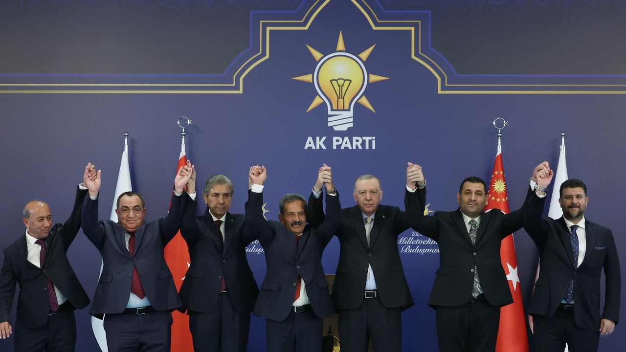 Cumhurbaşkanı Recep Tayyip Erdoğan, konuşmasının ardından AK Parti'ye katılan Ardahan Göle Belediye Başkanı Gökhan Budak'a, Gümüşhane Şiran Belediye Başkanı Abdülbaki Kara'ya, Bingöl Merkez Sancak Belde Belediye Başkanı Hayrettin Çiçek'e, Bingöl Merkez Ilıcalar Belde Belediye Başkanı Eşref Varol'a, Giresun Eynesil Ören Belde Belediye Başkanı Soner Erkan'a, Muş Bulanık Sarıpınar Belde Belediye Başkanı Maşuk Ataş'a ve Muş Bulanık Rüstemgedik Belde Belediye Başkanı Abit Özdemir'e parti rozetlerini taktı. (DHA)