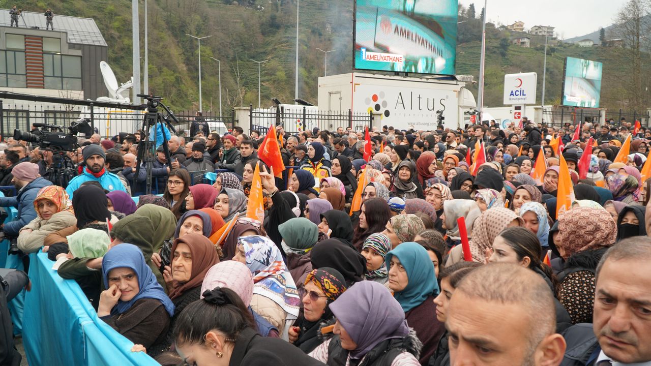 Kentte kazandırdıkları sağlık yatırımlarını sıralayan Erdoğan, 'Rize'de, 13'ü ikinci basamak hastane 19'u birinci basamak sağlık merkezi olmak üzere toplam 32 sağlık tesisi inşa ettik. Şehrimizde tamamlanan sağlık yatırımlarının toplam bedeli 11 milyar lirayı buldu. Bin 53 yataklı Rize Şehir Hastanesi ve 50 yataklı Çayeli Devlet Hastanesi tamamlandığında, bu rakam 36 milyar liraya ulaşacak. 2002 yılında Rize'de yıllık muayene sayısı 1,4 milyondu. Bugün bu sayı yaklaşık, 5 milyona ulaştı. Ambulans sayısını 3'ten aldık 49'a çıkardık. MR'dan, bilgisayarlı tomografiye kadar en modern cihazları sizin emrinize sunduk. 2002 yılında 15 olan diyaliz sayısı cihazı bugün 112'ye çıktı. 142 olan uzman doktor sayımız 423'e toplam hekim sayımız bin 15'e çıktı. 59 olan diş hekimi sayısı yüzde 431 artışla 313'e ulaştı. 613 olan ebe ve hemşire sayısı yüzde 154 artışla bin 555'i buldu. Sağlığa dair her başlıkta Rize'miz çok iyi bir yere geldi. Şehir hastanemiz hizmete girdiğinde bu bölge tam bir sağlık üssü haline gelecektir' diye konuştu.