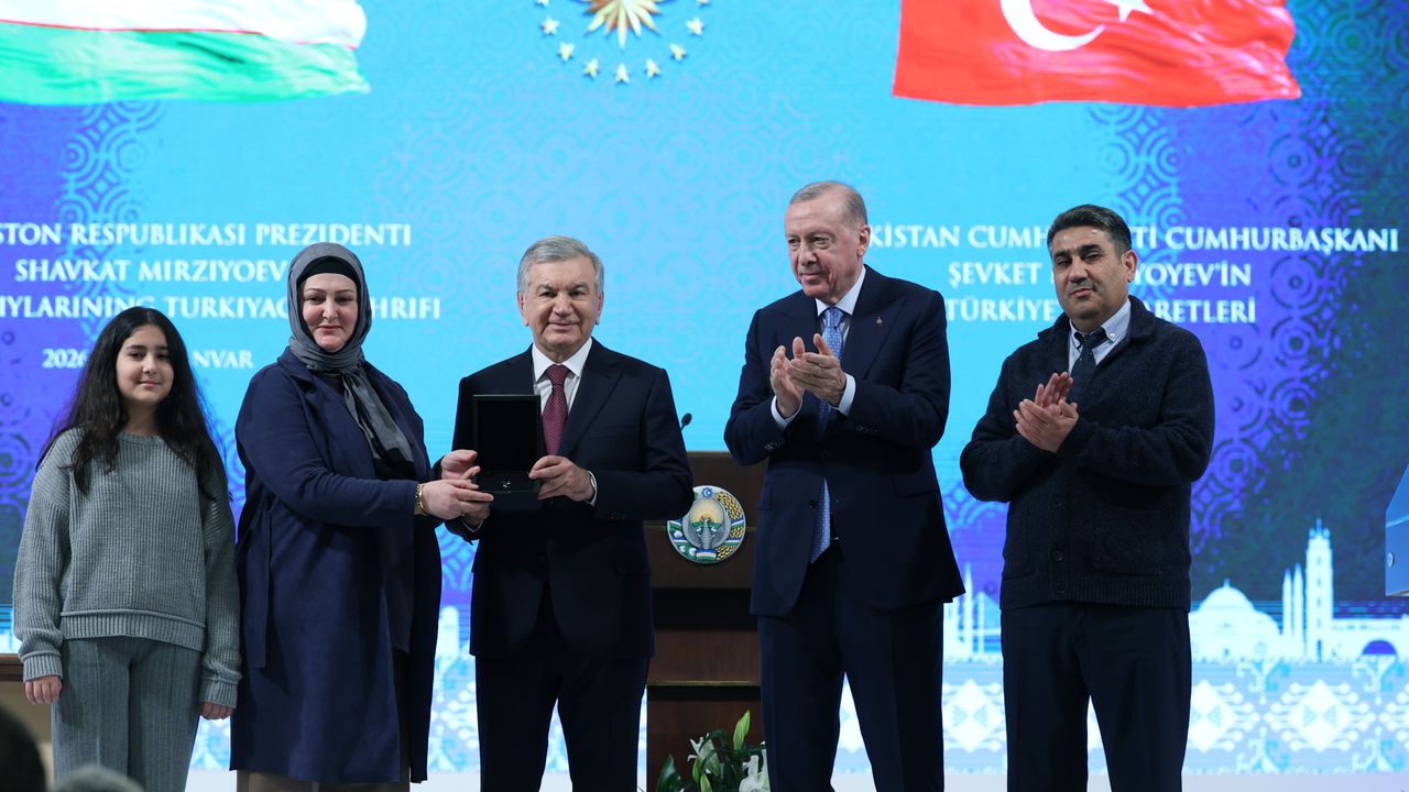 Cumhurbaşkanı Erdoğan, 'Özbek kardeşlerimizin konu Türkiye olunca sıkça kullandığı bir ifade var. Dilimiz bir, tilimiz bir. Yani gönlümüz bir, dilimiz bir. Sadece gönlümüz ve dilimiz değil aynı zamanda acımız da bir, hüznümüz de bir, derdimiz de bir. Buna en son 3 sene önce bizzat tecrübe ettik. Özbekistan 53 binden fazla canımızı toprağa verdiğimiz 6 Şubat depremlerinde yardımımıza koşan ilk ülkelerden biriydi. Özbek kardeşlerimizin depremin haberini alır almaz milletimiz için nasıl seferber olduğunu biz gayet iyi biliyoruz. Türk Devletleri Teşkilatı'nın 2023 yılındaki olağanüstü zirvesinde, Özbekistan'ın teklifiyle 6 Şubat Afet Kurbanlarını Anma ve Dayanışma Günü olarak ilan edilmişti. Ancak Özbekistan bununla da yetinmedi. TOKİ tarafından Hatay'ın Arsuz ilçesinde inşa edilen 3 bin 93 konuttan müteşekkil projede 308 konutun yapımını üstlendi. Bu projede bir Özbek mahallesinin yer alması bizi ziyadesiyle mutlu etmiş, bu yerleşim ebedi kardeşliğimizin kalıcı bir simgesi olmuştur. Birazdan bu konutların teslim törenini Sayın Mirziyoyev'le birlikte video konferans bağlantısıyla yapacağız. Depremzedelerimizin mutluluğunu bizzat paylaşmak üzere şu an burada bulunan ailelerimize yeni yuvalarının anahtarlarını Şevket kardeşimle birlikte teslim edeceğiz. Yeni konutlarımızın ailelerimiz için hayırlı uğurlu olmasını diliyorum. Özbekistan okulunun taş koyuş merasimini yine çevrimiçi olarak gerçekleştireceğiz. Özbekistan'ın yurt dışında ilk kez inşa edeceği bu okul için İstanbul'u tercih etmesi bizleri ayrıca memnun etmiştir. Taş koyuş törenimizin de hayırlara vesile olmasını diliyor, burada eğitim görecek öğrencilerimize şimdiden başarılar temenni ediyorum. Ülkemizin en zor günlerinde sergiledikleri dayanışma için tüm Özbek kardeşlerimize en başta Sayın Mirziyoyev'e tekrar teşekkür ediyorum' ifadelerini kullandı.