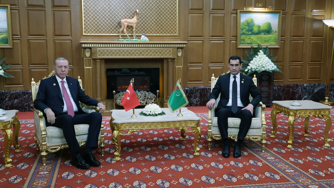 TÜRKMENİSTAN, (DHA) - CUMHURBAŞKANI Recep Tayyip Erdoğan, Türkmenistan'ın başkenti Aşkabat'ta düzenlenen Uluslararası Barış ve Güven Forumu’ndaki ikili görüşmeleri kapsamında Türkmenistan Cumhurbaşkanı Serdar Berdimuhammedov’la görüştü.