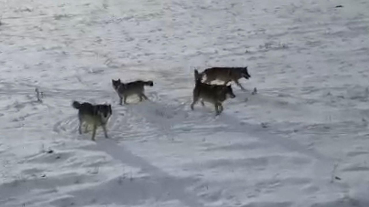 Dinçer AKTEMUR/ARDAHAN (DHA)- ARDAHAN'ın Göle ilçesine bağlı Yeleçli köyü yakınlarında doğada gezinen 5 kurt, dron ile görüntülendi.
