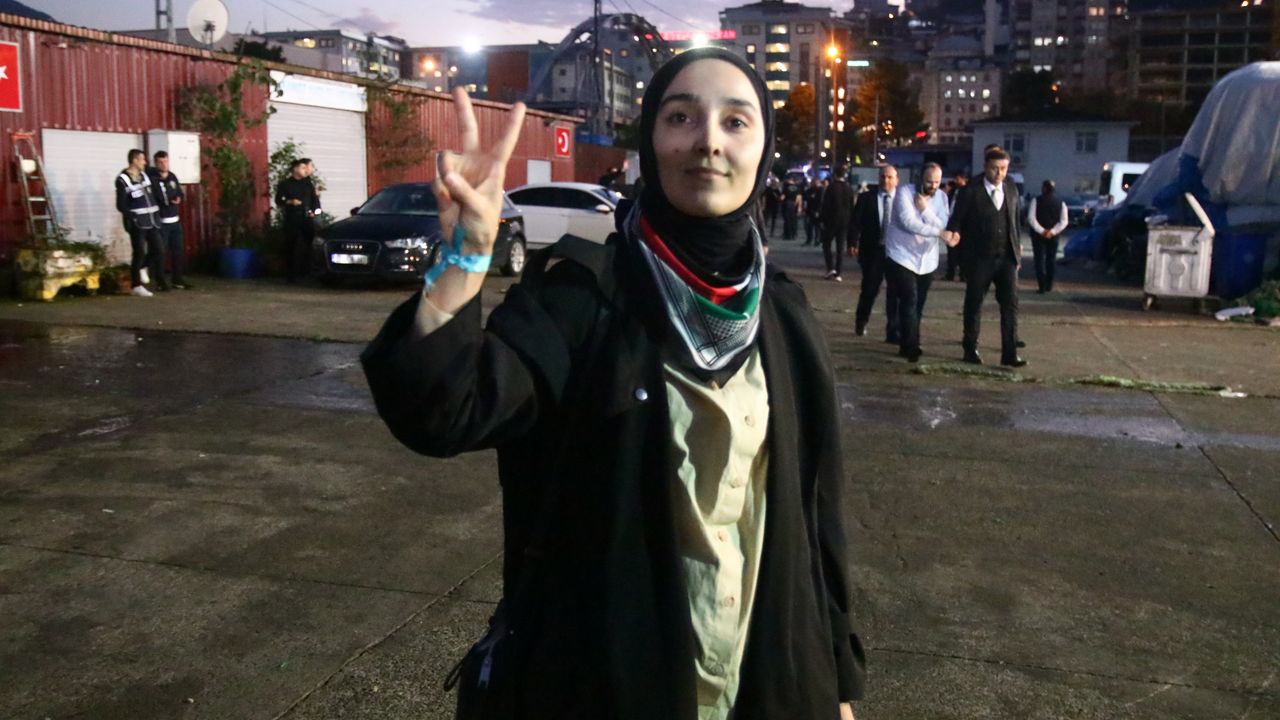 Sumud filosunda, İsrail tarafından alıkonulan teknedeki Abuddusamet Turan‘ın eşi Merve Turan Rize’de konuştu. Filonun misyonunu tamamladığını ifade eden Turan, “Eşim Sumud filosunda, 2 gün önce hepinizin bildiği üzere terörist İsrail tarafından alıkonuldular. Onlardan haber bekliyoruz. O çok inançlıydı ve inandığı yolda bu misyonu tamamladıklarını düşünüyorum. Bu filo fiziki olarak o halkayı kıramamış olabilir ama zihinlerde tüm ablukayı kırdıklarına inanıyorum. Tüm dünya ayağa kalktı. Onlar denizdeki görevleri tamamladılar biz de karada onların görevini devam ettirmek için meydanlardayız” diye konuştu.