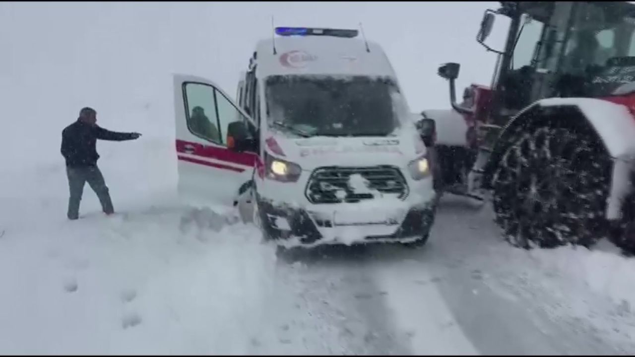 Batman'ın Gercüş ilçesi Kayapınar beldesinden hasta alan ambulans, yoğun kar ve tipi nedeniyle yolda mahsur kaldı. Bölgeye, İlçe Özel İdaresi Şantiye Şefliği ekipleri sevk edildi. Ekiplerin çalışmasıyla ambulans bulunduğu yerden çıkarıldı.
