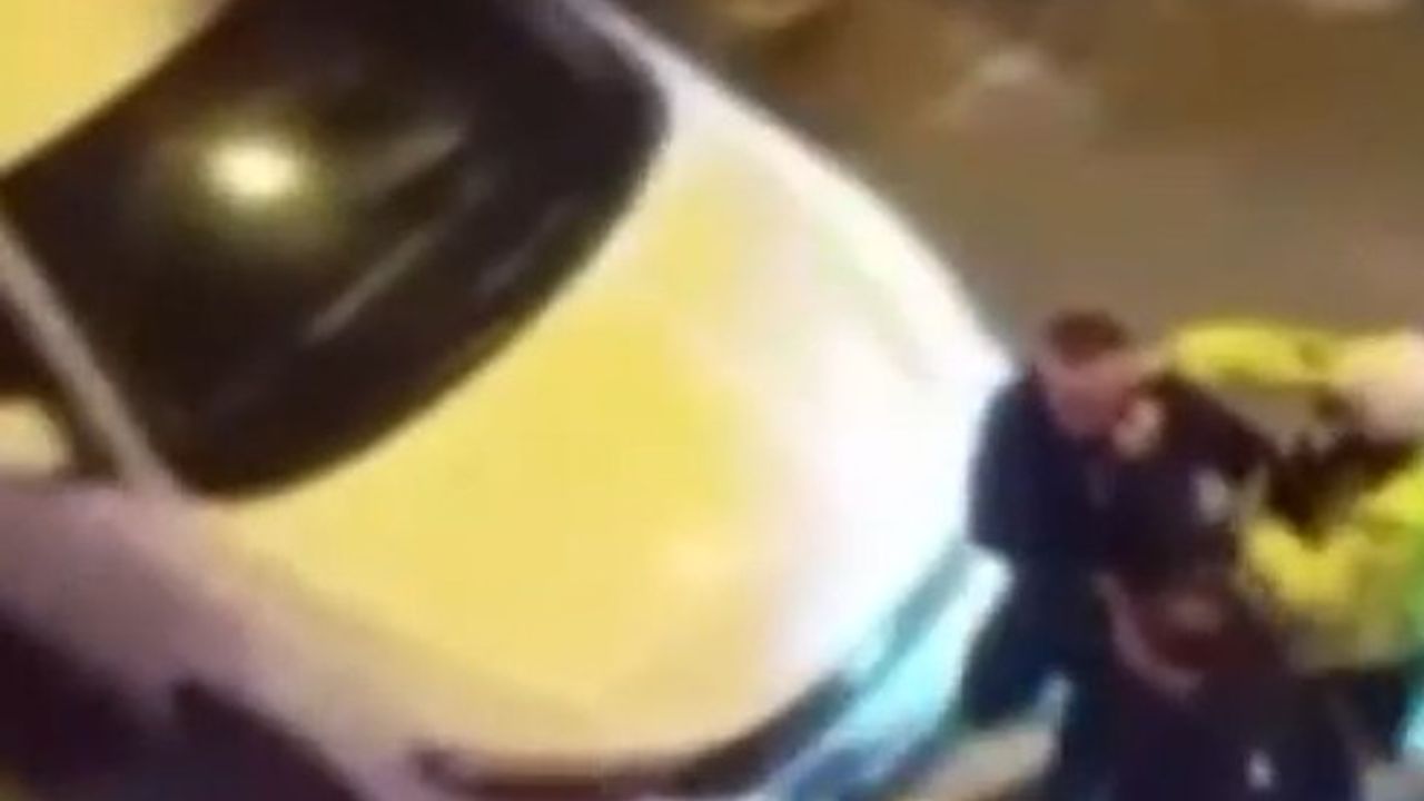 Alkollü olduğu iddia edilen sürücü gözaltına alınırken, o anlar çevredeki bir kişi tarafından cep telefonuyla görüntülendi. (DHA)