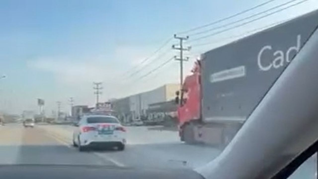 Bir süre takip edilen Samet M. isimli sürücü, TIR’ı sağ şeride çekip dururken, ehliyetsiz olduğu için kaçtığı öğrenildi. Samet M.'ye ehliyetsiz araç kullanmaktan 18 bin 678 TL ve aksine bir işaret bulunmadıkça, gidişe ayrılan en soldaki şeridi sürekli olarak işgal etmekten 9 bin 267 TL ceza kesildi. (DHA)